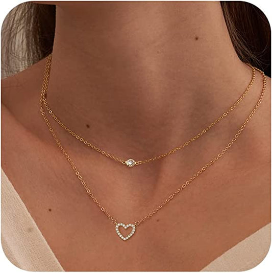 Layered CZ Open Heart Necklace