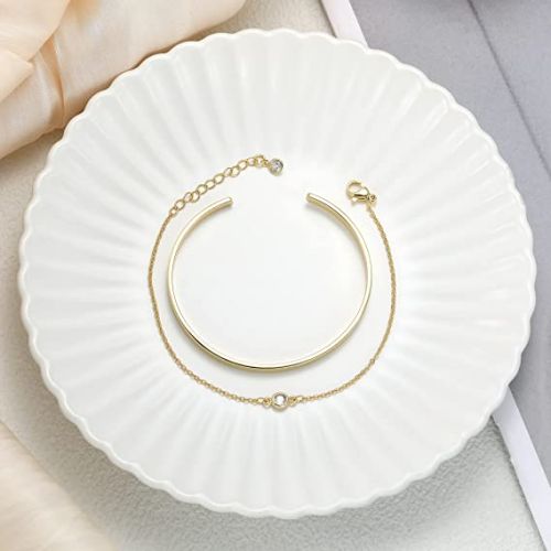 Adjustable Cuff with CZ Diamond Stacked Bracelets