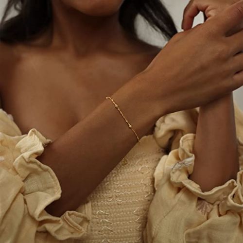 Layering Box Beaded Chain with Lip Bracelet